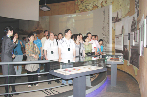 當(dāng)天下午,胡運(yùn)熹一行一踏上老家駱駝這塊土地就感到非常興奮,在鎮(zhèn)海新城管委會(huì),聽(tīng)取了新城規(guī)劃介紹,觀看了沙盤(pán),更是深有感觸。隨后,胡運(yùn)熹一行來(lái)到寧波幫博物館,走過(guò)“時(shí)光甬道”,先后參觀了寧波幫博物館序廳、篳路藍(lán)縷、建功立業(yè)、赤字情懷、群星璀璨和薪火永傳等展區(qū)。“小白菜,嫩艾艾,丈夫出門(mén)到上!碑(dāng)解說(shuō)員用寧波話朗讀出一句句寧波民謠時(shí),構(gòu)起了他們童年時(shí)的記憶,海外僑領(lǐng)們熱烈鼓掌,并對(duì)寧波商幫文化的精髓與傳承表示稱贊。胡運(yùn)熹一行來(lái)到鎮(zhèn)海應(yīng)行久外語(yǔ)實(shí)驗(yàn)學(xué)校, 在參觀了體藝館、多媒體教室、語(yǔ)音實(shí)驗(yàn)室等處后,胡運(yùn)熹連連感慨校園的巨大變化。同時(shí)他對(duì)該!盀榱艘磺袑W(xué)生的健康成長(zhǎng),促進(jìn)每個(gè)學(xué)生的最優(yōu)發(fā)展”的教學(xué)理念表示由衷的贊賞。他說(shuō),鎮(zhèn)海在培養(yǎng)人才方面,有這樣好的學(xué)校、這樣的優(yōu)秀的老師,我們的下一代將會(huì)有更好的遠(yuǎn)景,我們的祖國(guó)也會(huì)給世界一個(gè)全新的面貌。