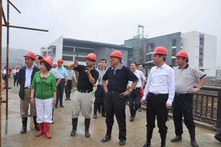 在四川省僑聯(lián)黨組書記周敏謙,中共綿陽(yáng)市委副書記、市長(zhǎng)曾萬(wàn)明,中鐵二局集團(tuán)公司黨委書記鄧元發(fā)等人的陪同下,林軍、喬衛(wèi)一行冒著雨后的泥濘深入工地,詳細(xì)察看了教學(xué)樓、學(xué)生宿舍、食堂、實(shí)驗(yàn)樓和行政樓等建筑的施工情況。