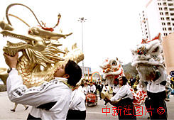 時光流逝,一些中國古老的民間習俗在許多地方都漸漸消失了,但澳門卻保留得很完整。比如“舞醉龍”,在它的原產(chǎn)地中山市石歧,已多年看不到了,只有在澳門,才可以一睹它的風采。 澳門的傳統(tǒng)舞獅也是這樣。每年農(nóng)歷大年初二,都要舉行“醉龍醒獅大會”!白睚垺本褪巧厦嫣岬降,它與常見的舞龍不同,只有龍頭和龍尾,沒有龍身。舞醉龍的武師,邊舞邊被人灌酒,以致帶有幾分醉意,舞姿豪放!靶血{”就是將一頭新“獅子”點睛開光,儀式十分隆重。 武師認為,新來的獅子,只是一個陌生的道具,開光后,才會賦予其生命、靈性,才能與人融為一體,成為一頭活靈活現(xiàn)的生靈。開光時,要在案上鋪上紅布,擺上一只烤乳豬,一只白雞供奉神祉,繼而燃放鞭炮,敲鑼打鼓。擔任點睛開光重任的,當屬資格最老、最年長、最備受敬重者。他在獅頭上灑幾滴清水,用朱紅的筆點在獅子的眼睛上,于是獅子開始蠕動,慢慢抬起頭,突然之間跳躍起來,隨著鼓樂抖擻身軀,象是長眠之后的猛醒。開光之后,在場的人都要分食一塊烤乳豬,據(jù)說吃了以后可以強身健體,久戰(zhàn)沙場,百戰(zhàn)百勝。