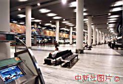 圖片說(shuō)明: 澳門國(guó)際機(jī)場(chǎng)候機(jī)大廳。