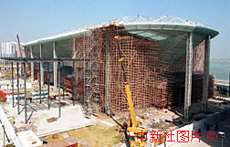 澳門政權移交大典場館外的腳手架開始拆除,場館的外部形象初步顯現(xiàn)。 中新社傳真 毛建軍 攝