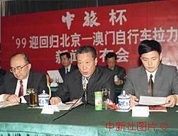 北京至澳門自行車?yán)悓⑴e行 作者:趙振清 被列入慶祝澳門回歸祖國(guó)正式慶典活動(dòng)之一的"中旅杯九九迎回歸北京至澳門自行車?yán)?十四日在北京舉行新聞發(fā)布會(huì):屆時(shí)將有來自全國(guó)各省市及香港、澳門的十二支代表隊(duì)共七十二名運(yùn)動(dòng)員參加這一中國(guó)有史以來規(guī)模最大、水平最高、距離最長(zhǎng)的比賽。 |