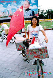 湖南省武崗二十五歲的農(nóng)民李孝富為迎接澳門回歸,騎自行車十五個月,行程約三萬八千公里,十一月十二日抵達深圳。