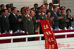 全國(guó)政協(xié)副主席、澳門(mén)特區(qū)籌委會(huì)副主任委員馬萬(wàn)祺十九日向解放軍駐澳門(mén)部隊(duì)贈(zèng)送書(shū)有"威武之師文明之師"的錦旗。