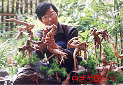 為迎接澳門回歸,浙江省義烏市民間根雕藝術(shù)家樓賢泰先生,近日創(chuàng)作完成了大型根雕作品“百鶴盼歸圖”。 作者:盧國良