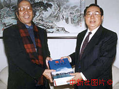 中國(guó)大百科全書(shū)出版社與澳門基金會(huì)合作編纂的《澳門百科全書(shū)》,是由近百名專家歷經(jīng)三載完成。中國(guó)大百科全書(shū)出版社社長(zhǎng)單基夫,近日在北京向新華社澳門分社社長(zhǎng)王啟人(右)贈(zèng)送了該書(shū)。