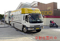 參加澳門回歸報(bào)導(dǎo)的現(xiàn)場(chǎng)電視轉(zhuǎn)播車