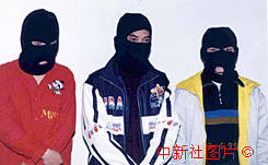 粵澳警方十二月六日再度聯(lián)手,破獲以澳門黑社會組織成員楊振林為首的跨境持槍搶劫團伙,共抓獲該團伙犯罪嫌疑人八名。圖為澳門警方抓獲的黑社會成員蘇銀友(左)、翁文輝(中)、陳滿松(右)。作者:莫非
