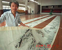 素有“江南漁翁”之稱的安徽省蕪湖市國(guó)畫(huà)家王宗榮先生,近日繪制了一幅長(zhǎng)一百五十米、繪有一千九百九十九條長(zhǎng)江全流域群魚(yú)的巨作,以賀澳門(mén)回歸。作者:吳芳
