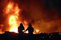 圖文:消防人員撲滅墜毀飛機(jī)上的火焰