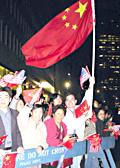 圖:中外友人聚集在曼哈頓熱烈歡迎胡錦濤