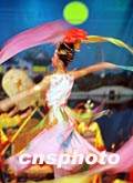 西安排練舞蹈迎接國慶節(jié)旅客